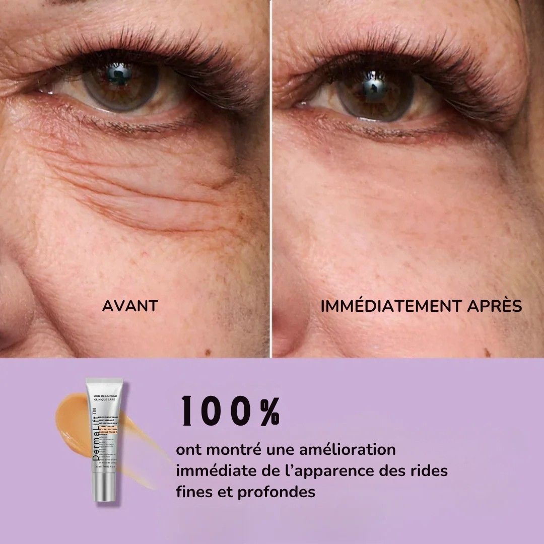Les rides, poches et cernes disparaissent visiblement en quelques secondes grâce à la formule innovante DermaLift™.